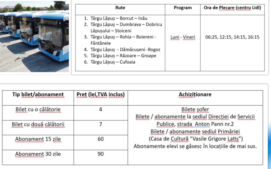 „Începând cu data de 1 aprilie 2025, autobuzele electrice vor circula conform programului și rutelor afișate, facilitând călătoriile pe raza orașului Târgu Lăpuș într-un mod mai sustenabil”, se anunță pe pagina orașului.