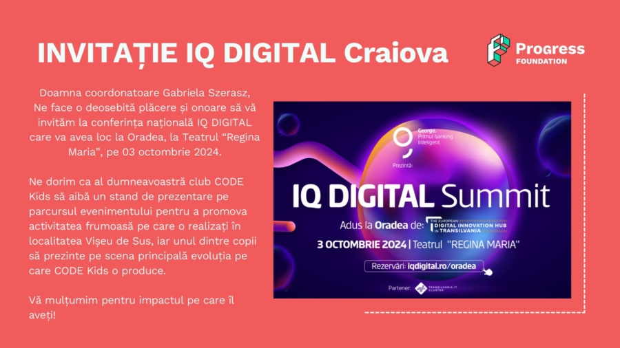 Clubul Code Kids al Bibliotecii Vișeu de Sus, invitat la Conferința Națională IQ Digital de la Oradea