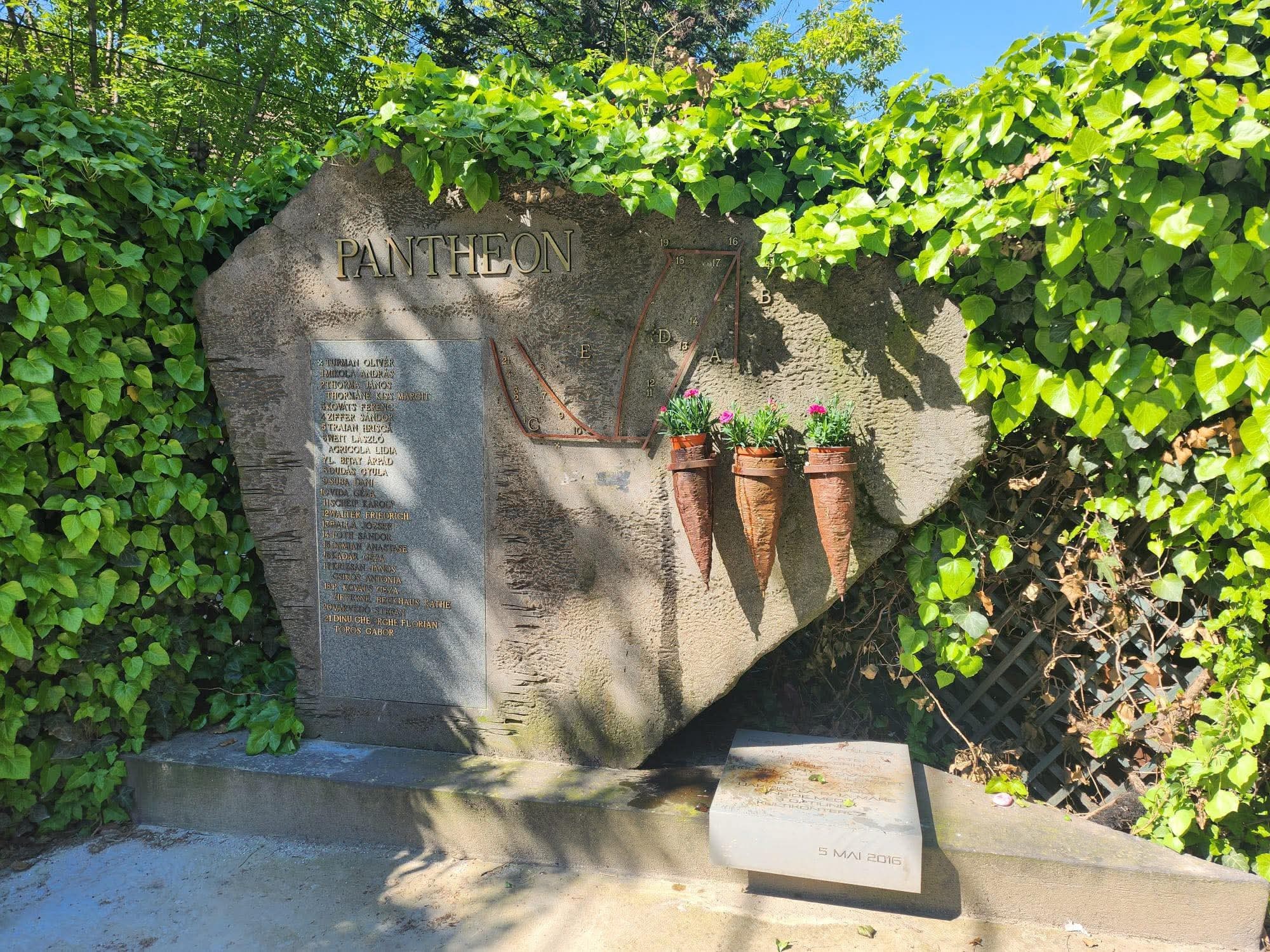 „În cele din urmă, lucrarea de artă Pantheon de la Cimitirul Dealul Florilor, autor Marcel Stanciu, inițiator și finanțator: Fundația Arte+, anul realizării: 2016, tehnică: bloc masiv de andezit, fier, litere aplicate și transfer fotografie istorică, va fi realizată în replică de către același autor, artist plastic, și va fi finanțată de Parohia Reformată.