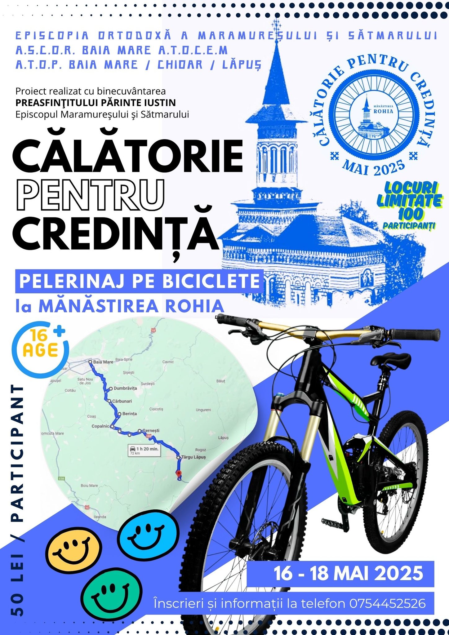 În perioada 16-18 mai, în Maramureș se desfășoară un proiect inedit dedicat tinerilor și nu numai. Acesta se intitulează „Călătorie pentru credință”. Mai exact, se va face un pelerinaj pe biciclete la Mănăstirea Rohia.