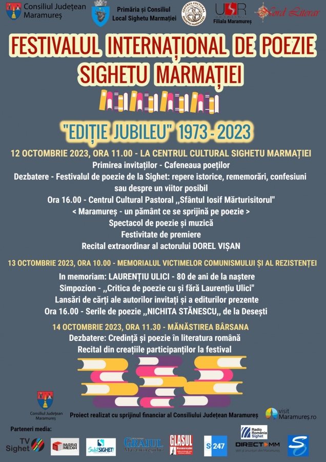 În perioada 12-14 octombrie va avea loc Festivalul Internațional de Poezie de la Sighetu Marmației, ediție jubileu (1973-2023).