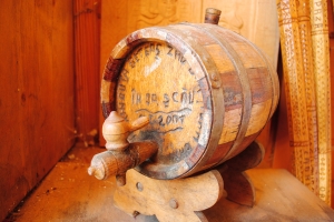 Cioplește și, cu dosul palmei, curăță de așchii lemnul la care lucrează: un vas în formă de frunză. „Fac niște vase de astea, că trebuie să mă duc la târg la Săpânța. Aista îl fac pentru un prieten de-al meu din Câmpulung la Tisa. Ne-am cunoscut prin spital. Îi hram la ei în sat și i-oi duce unu’”. În preajma lui.., doar lemn, butuci mari și mici, scânduri, dălți, obiecte care așteaptă să fie finisate, lăcuite, dăinuite, dăruite… Lemn cioplit, lemn proaspăt încă nelucrat, mirosind a sevă și-a pădure, lemn învechit de vreme, transformat în obiecte; de la pecetare, la fusuri, de la „bote fermecate” la vase, de la butoaie mari și mici, la chei și „jucărei” – cum îi place lui să le alinte. Fiecare obiect sculptat are o poveste, fiecare e făcut cu drag și în fiecare sunt puse cu grijă simbolurile fără de care viața maramureșeanului autentic n-ar însemna nimic: funia, soarele, colacul, dinții de lup, pomul vieții, crucea. Le ia pe rând, cu delicatețe și le prezintă: pecetarul pe care ne spune cum are grijă să scrie literele invers, pentru a se putea imprima corect pe prescuri; apoi picioarele de scaun și stâlpișorii cu funii răsucite împărțite în șapte, cât zilele săptămânii; butoaiele mici cu cep pe care sunt încrustate versurile: „Horincuță be-te-aș, zău/Da’ nu am bani în jașcău”; steagul dacic cu cap de lup, de care e mândru că îl are și pe poartă.