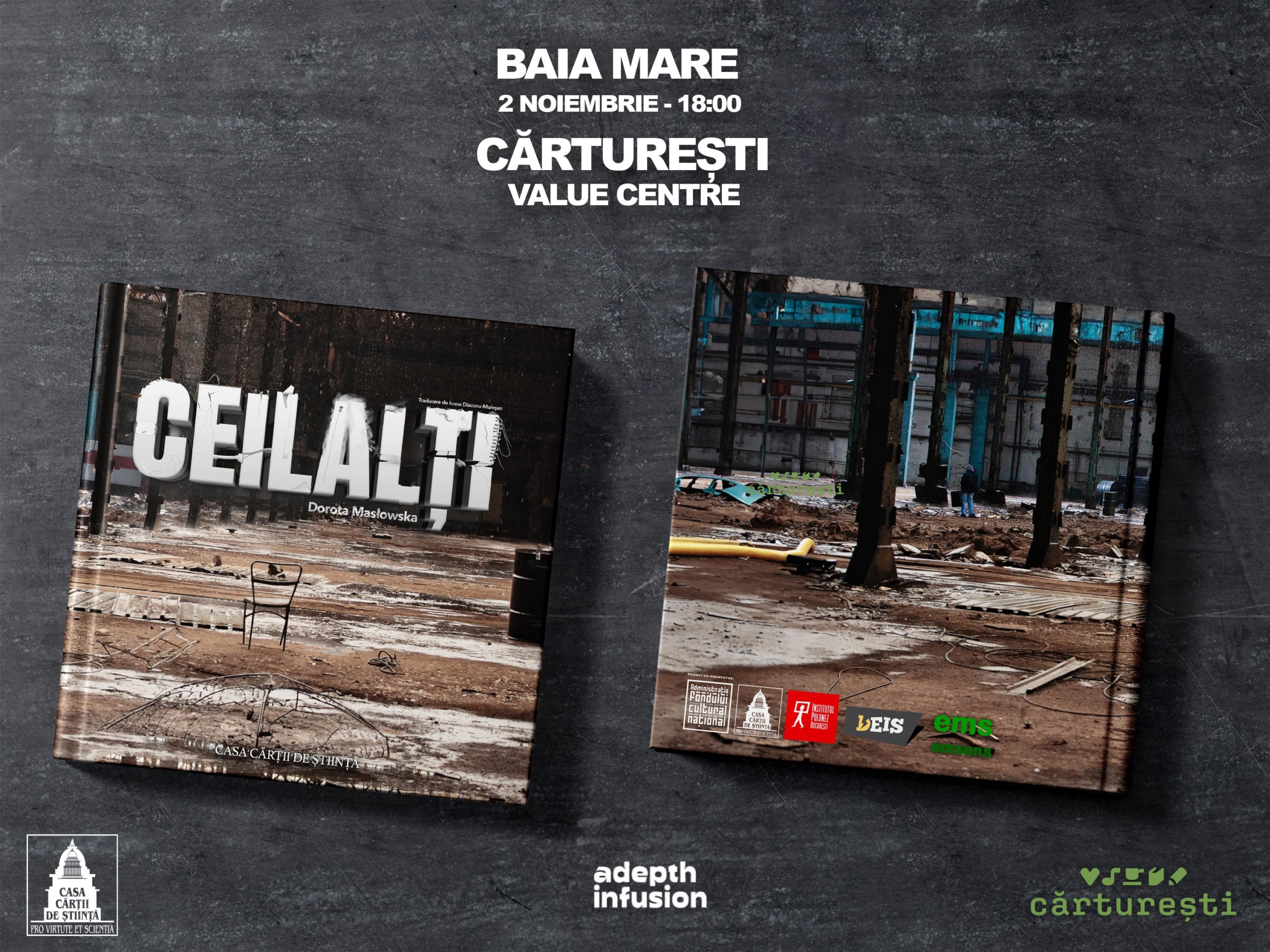 Apărut la editura Casa Cărții de Știință, în traducerea Ioanei Diaconu-Mureșan, cu o prefața semnată de criticul de teatru Iulia Popovici, ilustrații de Raul Fozecaș, postfață și selecție ilustrații de Andrei Dinu, fotografia de copertă Silviu Gheție, „Ceilalți”, de Dorota Masłowska este un proiect editorial de tip 2.0 gândit ca o continuare a producției semnate de Adepth Infusion în noiembrie 2023, un performance hibrid, la granița dintre un concert rap și un spectacol multimedia, cu performeri live & video, DJ, video art, live streaming, jucat într-un spațiu neconvențional, o hală industrială din Baia Mare Est, într-o zonă cu probleme sociale pe multiple straturi.