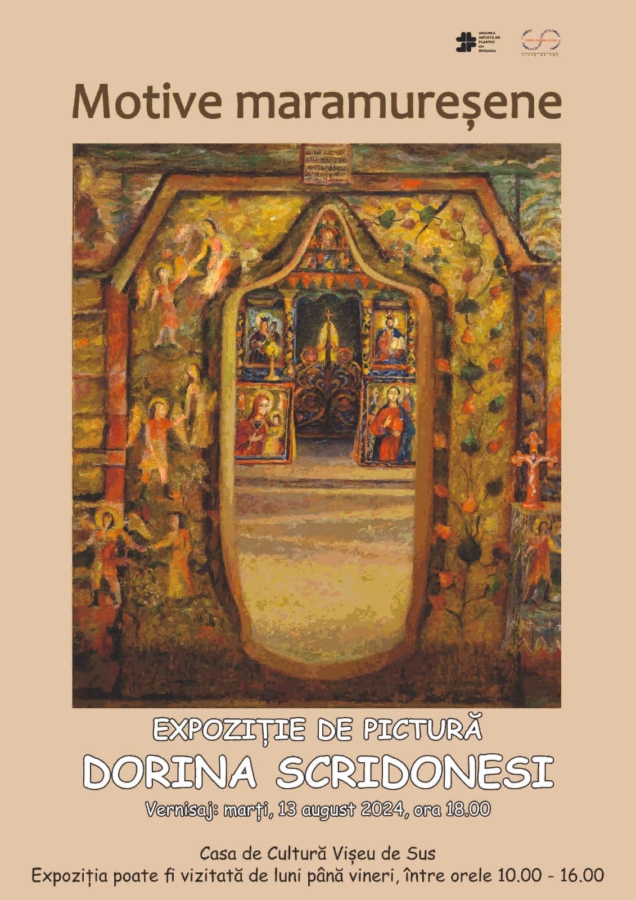 Marți, 13 august, ora 18.00, la Casa de Culturǎ Vișeu de Sus va avea loc vernisajul expoziției de pictură „Motive maramureșene”, a artistului plastic Dorina Scridonesi.