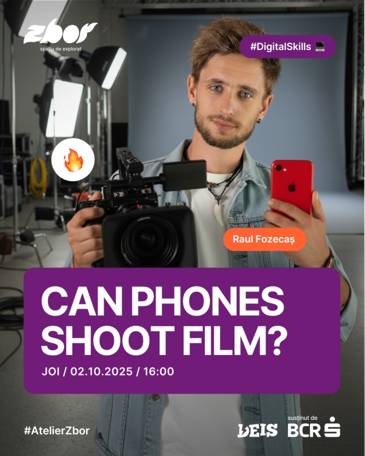 Începând cu ora 16:00, videograful și lucrătorul de tineret Raul Fozecaș invită toți doritorii la workshop-ul intitulat „Can Phones Shoot Film?”, unde va oferi informații utile și sfaturi despre cum se poate utiliza telefonul la capacitate maximă pentru filmări și editare.