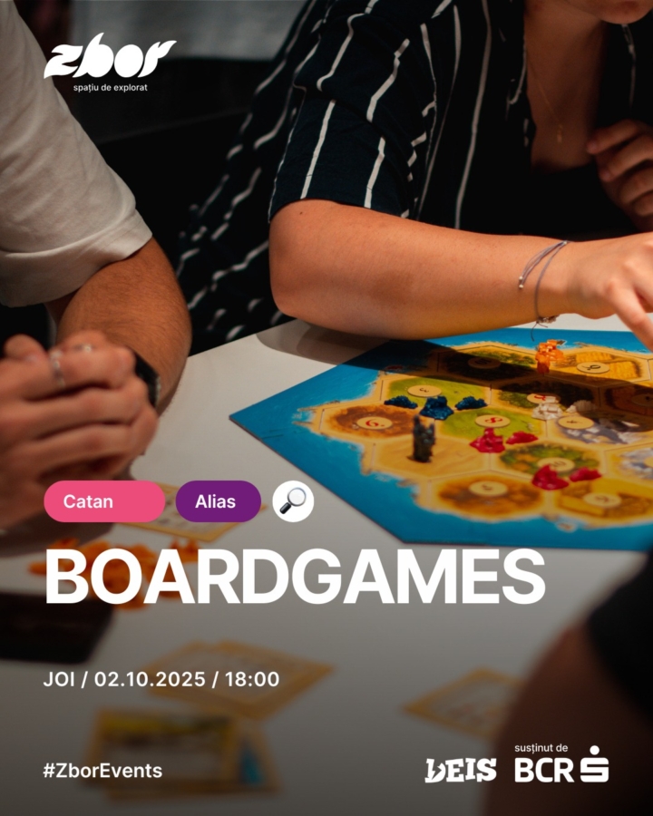 După acest atelier, de la ora 18:00 urmează o seară relaxantă de jocuri, în cadrul căreia participanții vor avea ocazia de a se cunoaște mai bine între ei, de a socializa și a stabili noi legături de prietenie. De la Monopoly, Dixit, Catan sau Mafia, toate aceste jocuri promit o atmosferă prietenoasă și caldă pentru toată lumea.