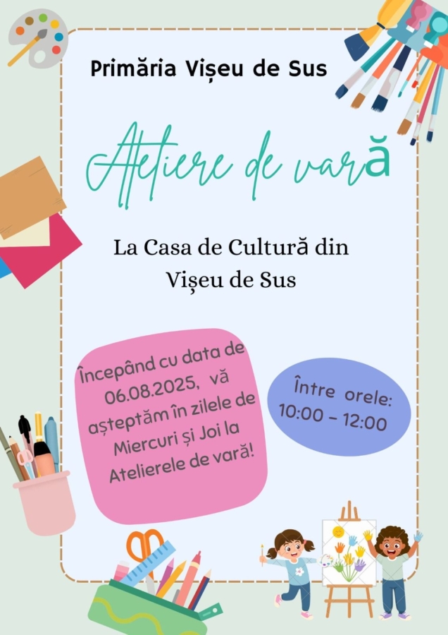 Începând de azi, 6 august, în fiecare miercuri și joi între orele 10:00-12:00, Casa de Cultură din Vișeu de Sus va găzdui atelierele de vară pentru copii.