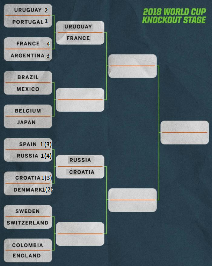 Optimi încheiate cu același scor (1-1) și, după prelungiri, decise la penalty-uri. E drept că, în cazul Croației, Modrici a ratat un penalty în min. 116, dar până la urmă – vorba copiilor – ”s-a arătat dreptatea”. Nu același lucru se poate spune despre Rusia, care a practicat un antifotbal ce a mizat doar pe loteria penalty-urilor, unde i-a surâs norocul și a trimis acasă o altă campioană mondială și europeană (dar care nici nu a strălucit).