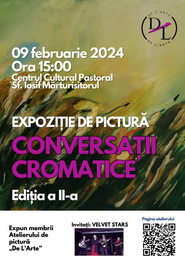 Vineri, 9 februarie, de la ora 15:00, în sala „Justinian Arhiepiscopul” a Centrului Cultural Pastoral „Sfântul Iosif” Mărturisitorul din Sighetu Marmației va avea loc expoziția de pictură „Conversații Cromatice”, ediția a II-a.