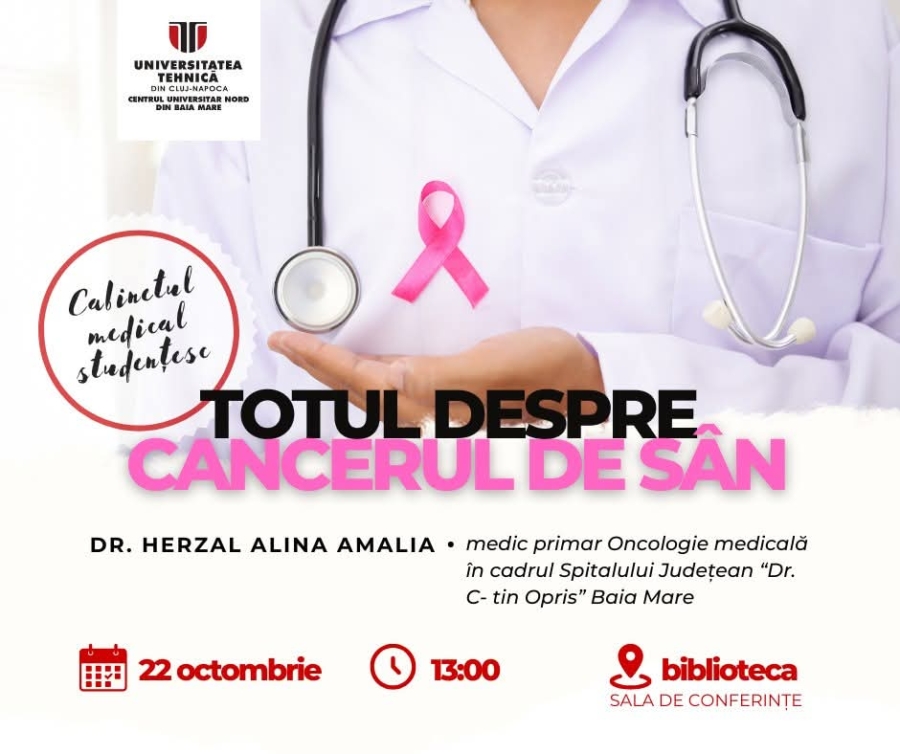 Centrul Universitar Nord Baia Mare va găzdui o întâlnire dedicată conștientizării cancerului mamar