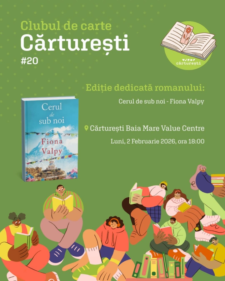 Clubul de carte pentru adulți revine cu o nouă ediție, dedicată romanului „Cerul de sub noi”, la Cărturești Baia Mare - 2 ore în urmă