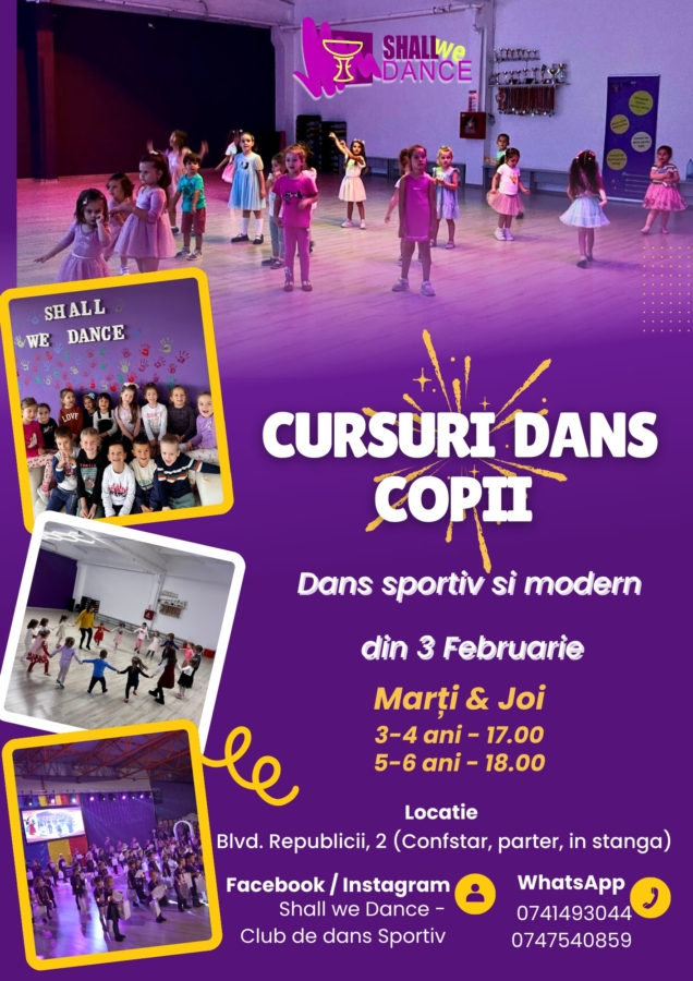Clubul de dans sportiv Shall We Dance din Baia Mare a deschis înscrierile pentru un nou curs de dans, destinate copiilor cu vârste cuprinse între 3 și 6 ani, care va începe din data de 3 februarie.