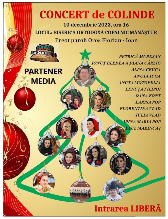 Duminică, 10 decembrie, de la ora 16.00, la Biserica Ortodoxă din Copalnic Mănăștur (preot paroh Florian Ioan Oros) va avea loc un frumos concert de colinde.