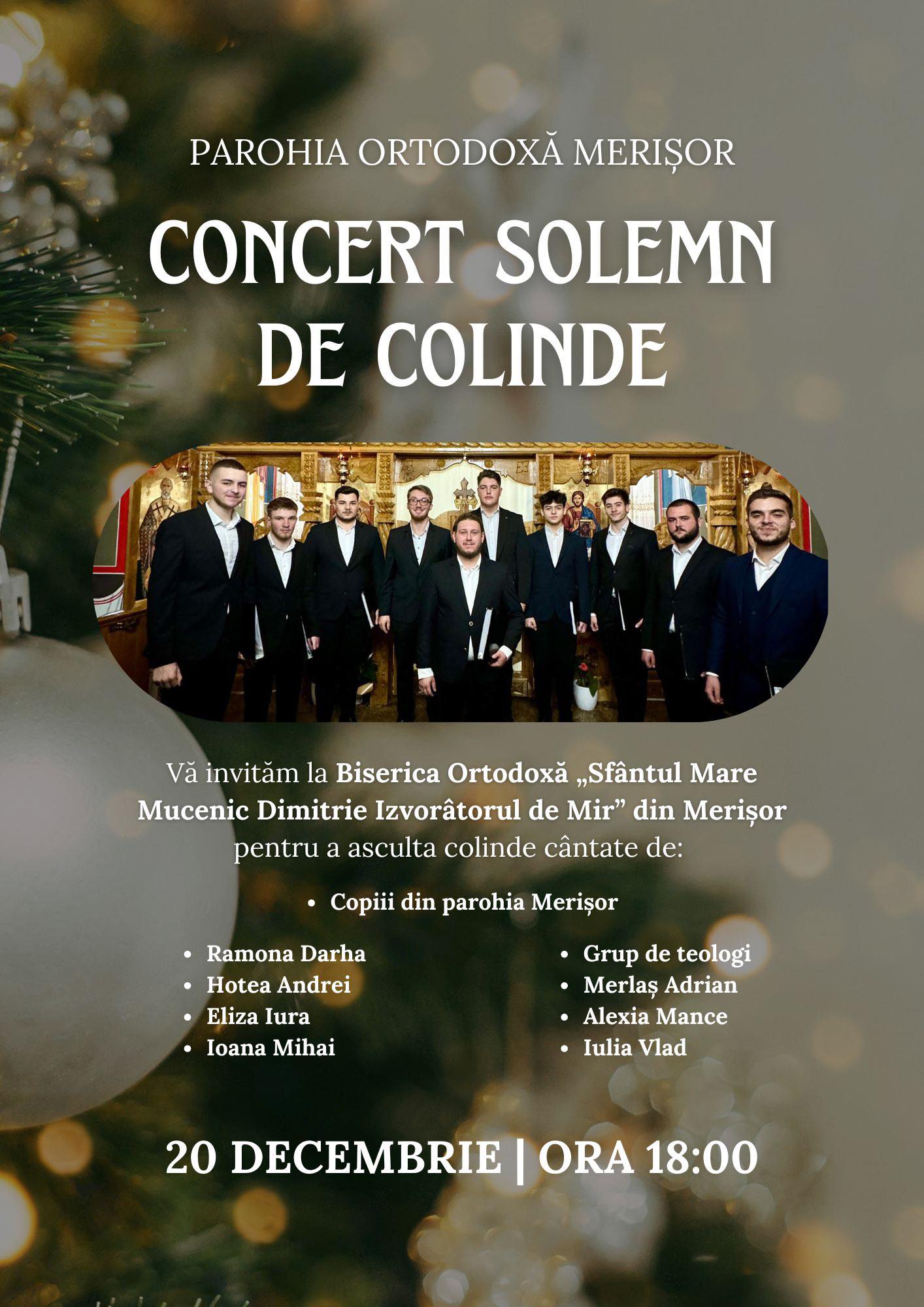 „Programul va debuta cu un moment susținut de copiii parohiei, urmat de interpretări de colinde oferite de invitații noștri, care vor aduce prin cânt și armonie vestea cea bună a Crăciunului.
