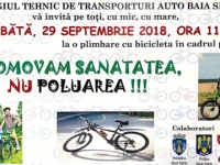 Pentru sâmbătă, 29 septembrie, Colegiul Tehnic de Transporturi Auto Baia Sprie îi invită pe doritori la o plimbare cu bicicleta. E vorba de o acțiune ecologistă care face parte din proiectul ”Promovăm sănătatea ,nu poluarea”.