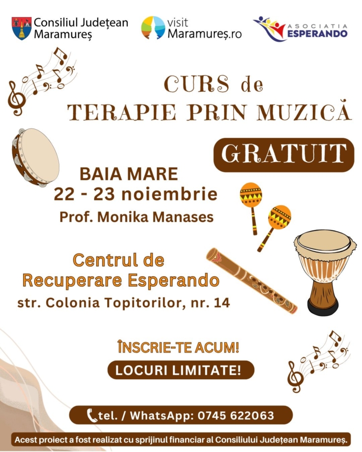 Cursul gratuit de terapie prin muzică va avea loc la Asociația Esperando din Baia Mare