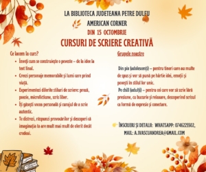 La Biblioteca Județeană ”Petre Dulfu”, la American Corner, se organizează, din 15 octombrie, cursuri de scriere creativă.