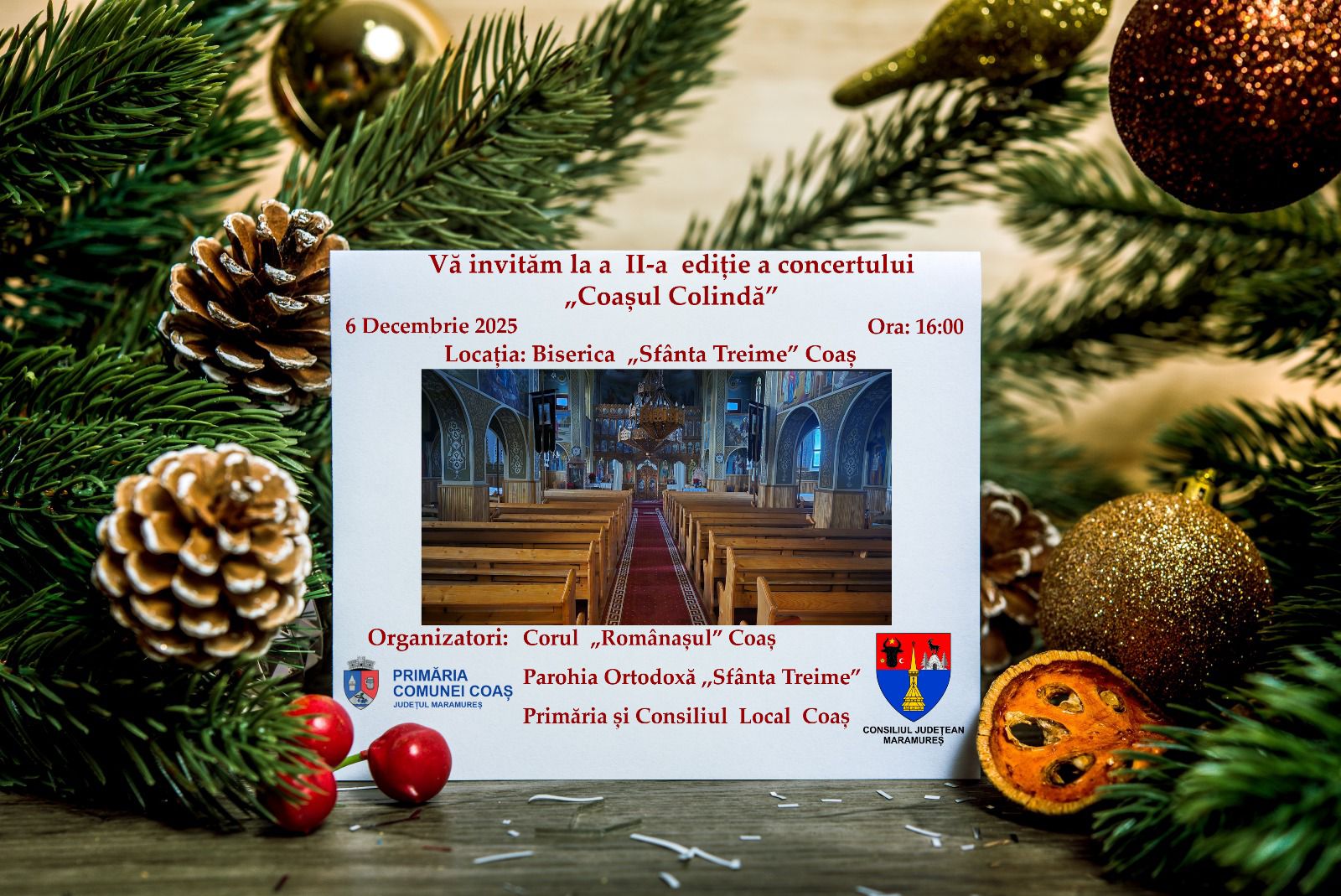 Sâmbătă, 6 decembrie, de la ora 16.00, la Coaș va avea loc a II-a ediție a concertului de colinde „Coașul Colindă”. Evenimentul se va desfășura la Biserica Ortodoxă „Sânta Treime”.