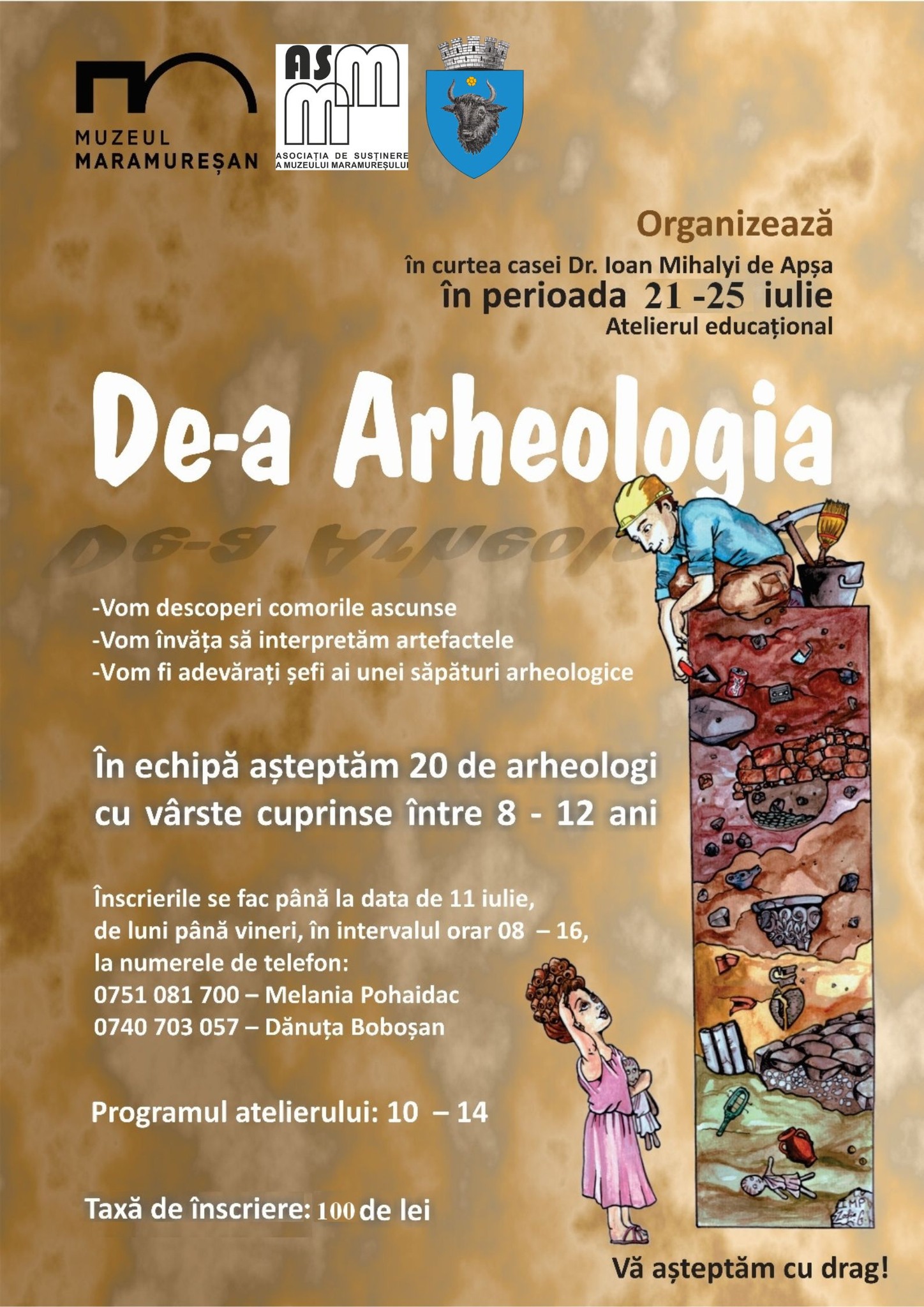 Muzeul Maramureșan din Sighetu Marmației organizează în perioada 21-25 iulie  atelierul educațional ”De-a Arheologia”.  Acesta va avea loc în curtea Casei memoriale ”Dr. Ioan Mihalyi de Apșa” și se adresează copiilor cu vârste cuprinse între 8 și 12 ani. În ultima zi a atelierului sunt invitați să participe și cei mari.