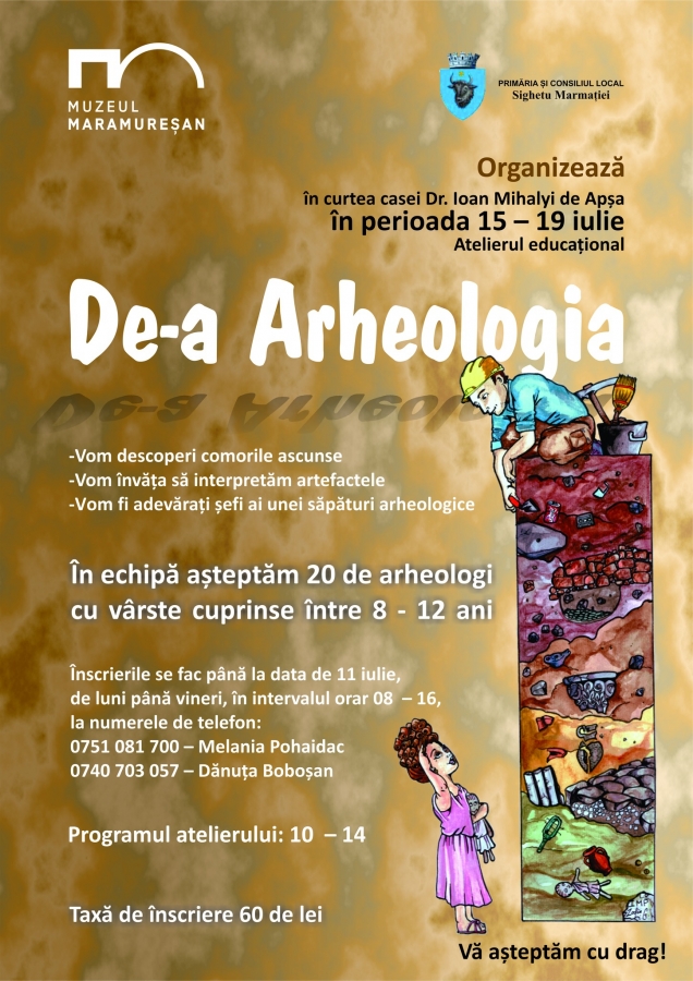 În perioada 15 – 19 iulie, Muzeul Maramureșan din Sighetu Marmației organizează atelierul educațional „De-a Arheologia”.