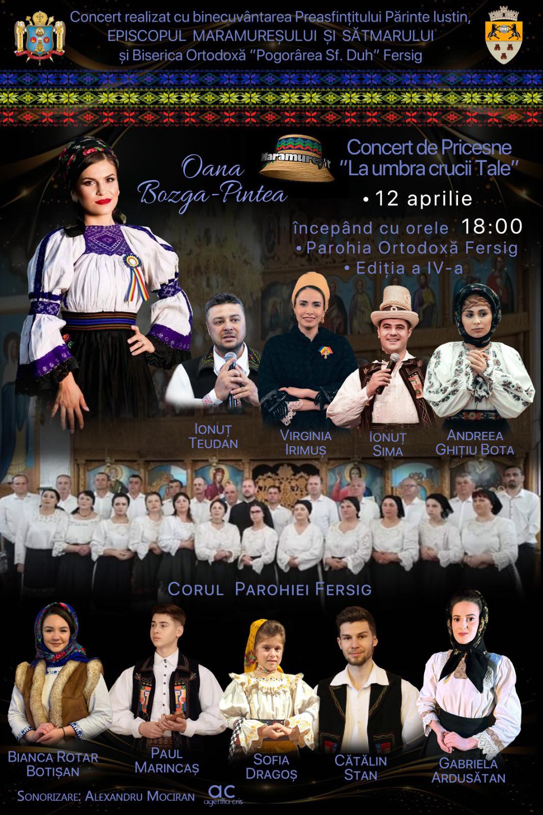 „Vă invităm cu drag la un concert de pricesne ce va avea loc sâmbătă, 12 aprilie, la ora 18:00, în Biserica „Pogorârea Sfântului Duh” din Fersig. Evenimentul se desfășoară cu binecuvântarea Preasfințitului Părinte Iustin, Episcopul Maramureșului și Sătmarului.