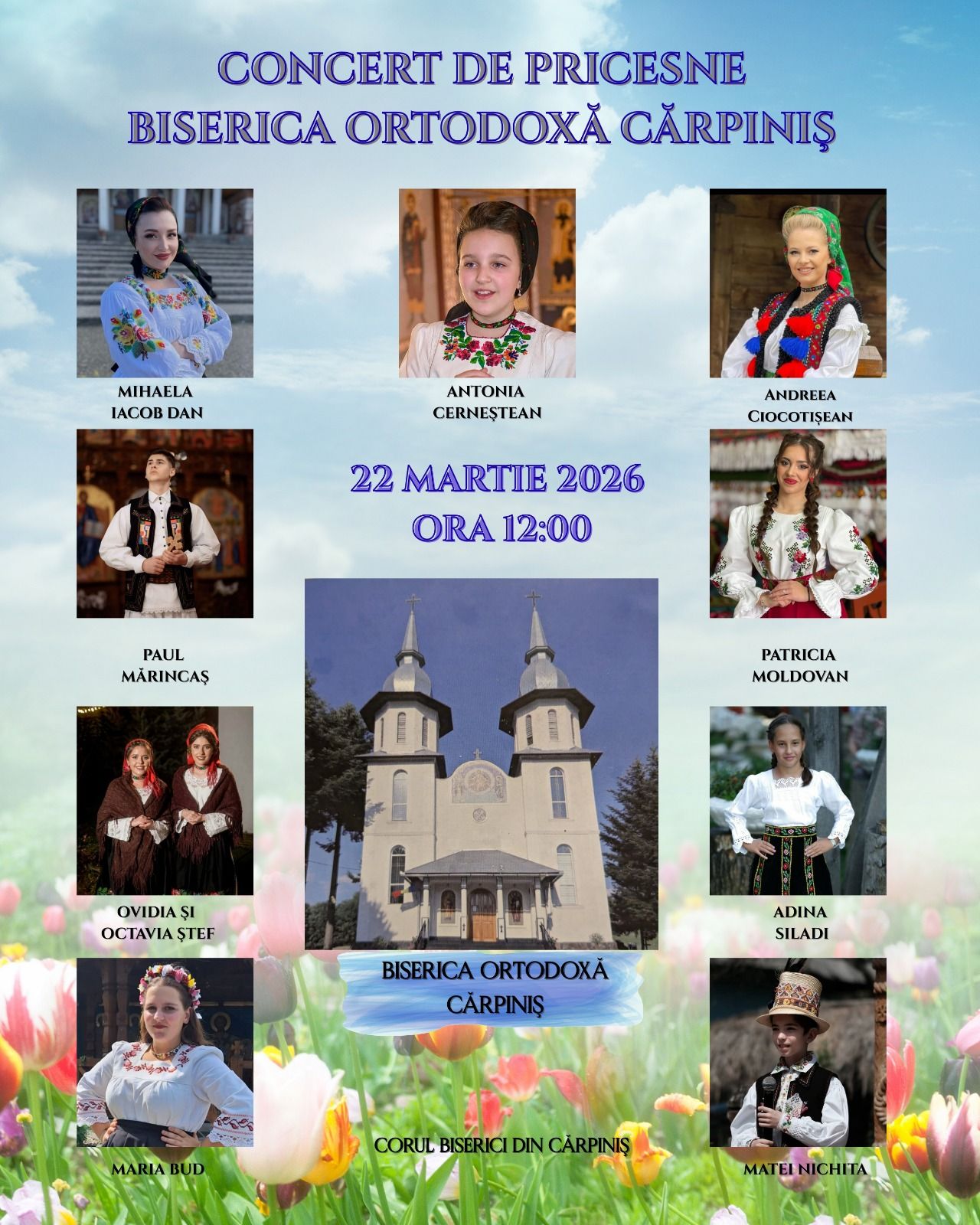 În 22 martie, începând cu ora 12:00, Biserica Ortodoxă din Cărpiniș va găzdui un concert de pricesne.