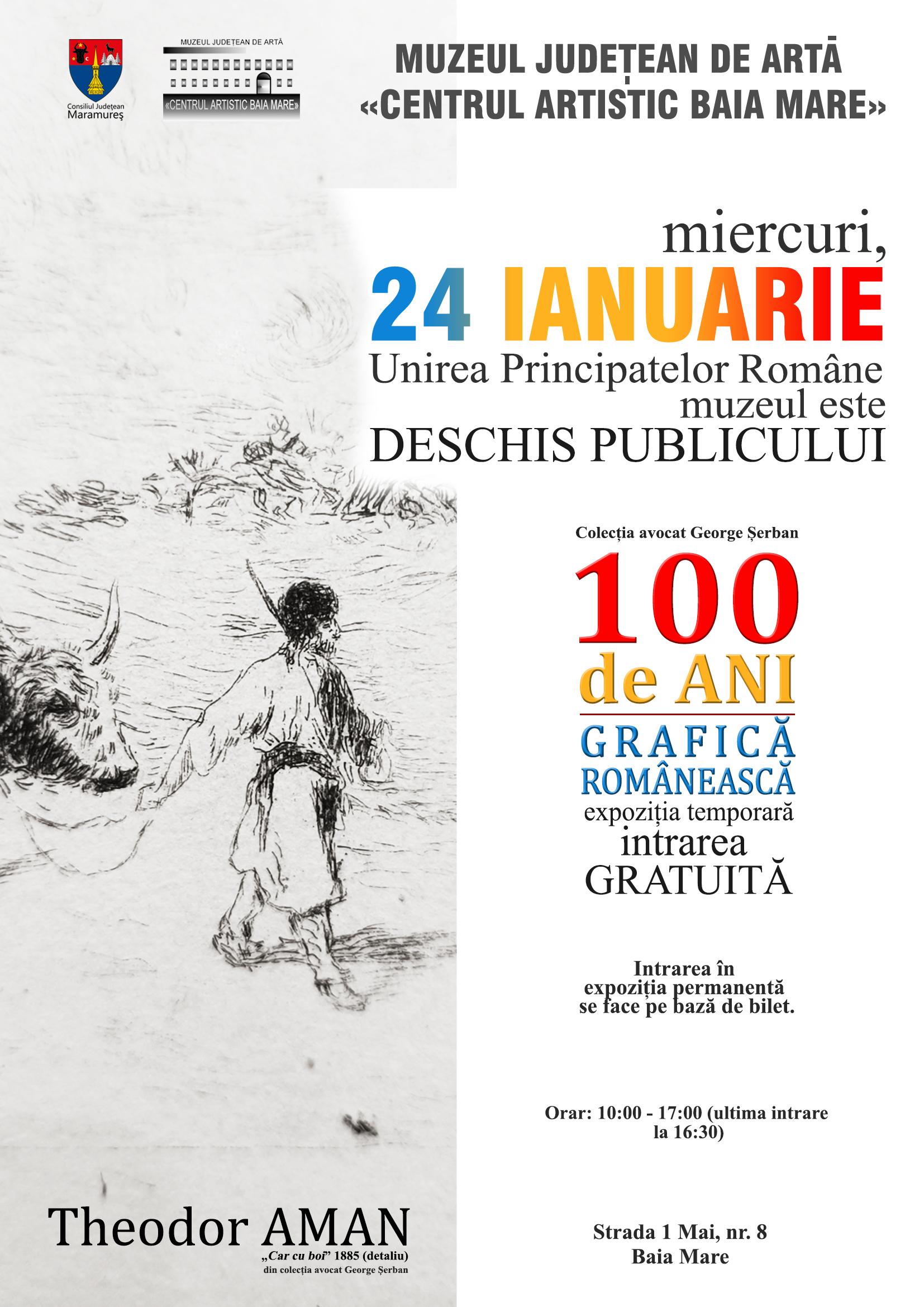 În 24 ianuarie, cu ocazia Zilei Unirii Principatelor Române, Muzeul Judeţean de Artă «Centrul Artistic Baia Mare» este deschis pentru public și vă invită să descoperiți și să sărbătoriți spiritul artistic al acestui moment istoric.