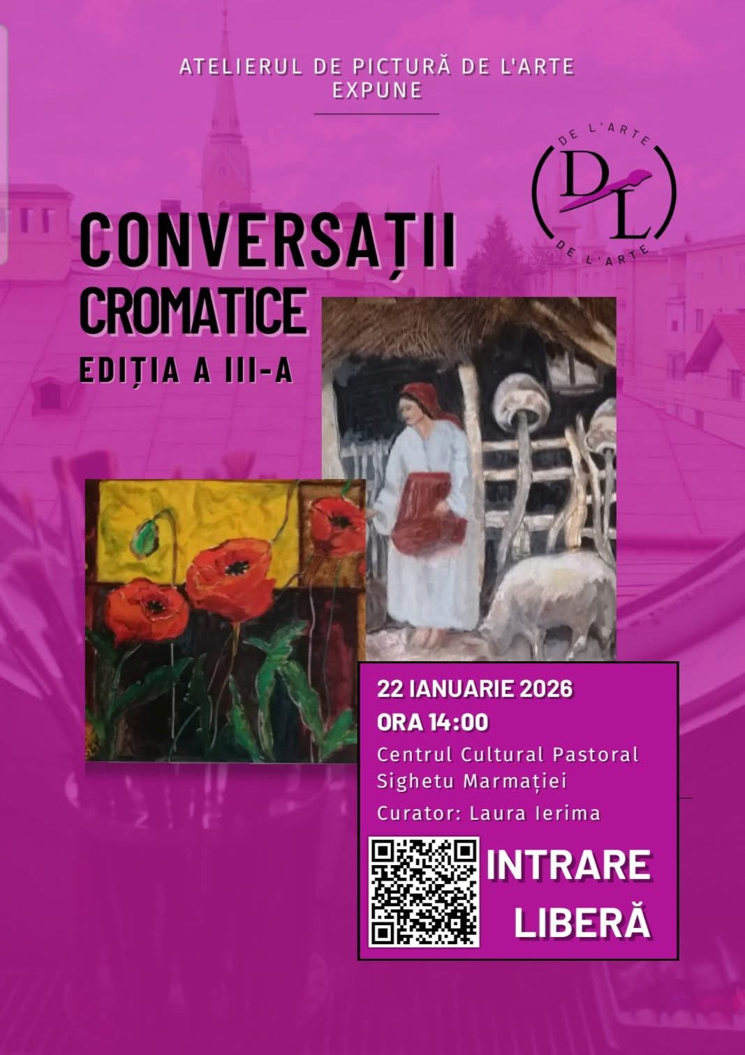 Azi, 22 ianuarie, ora 14:00, Centrul Cultural Pastoral „Sfântul Iosif Mărturisitorul” din Sighetu Marmației va găzdui vernisajul expoziției de pictură „Conversații Cromatice”, ediția a III-a.