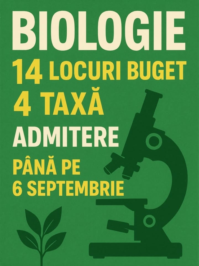 - Biologie – 14 locuri la buget, 4 locuri cu taxă;