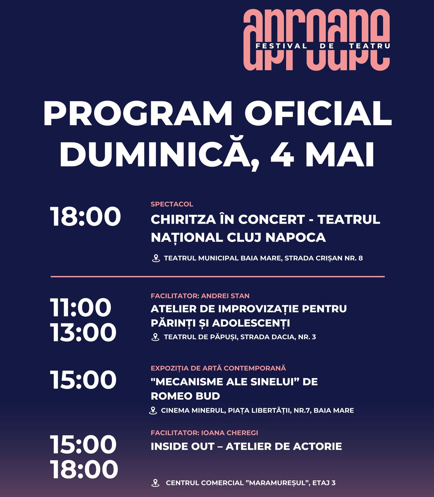 Festivalul ”Aproape” – programul de duminică, 4 mai