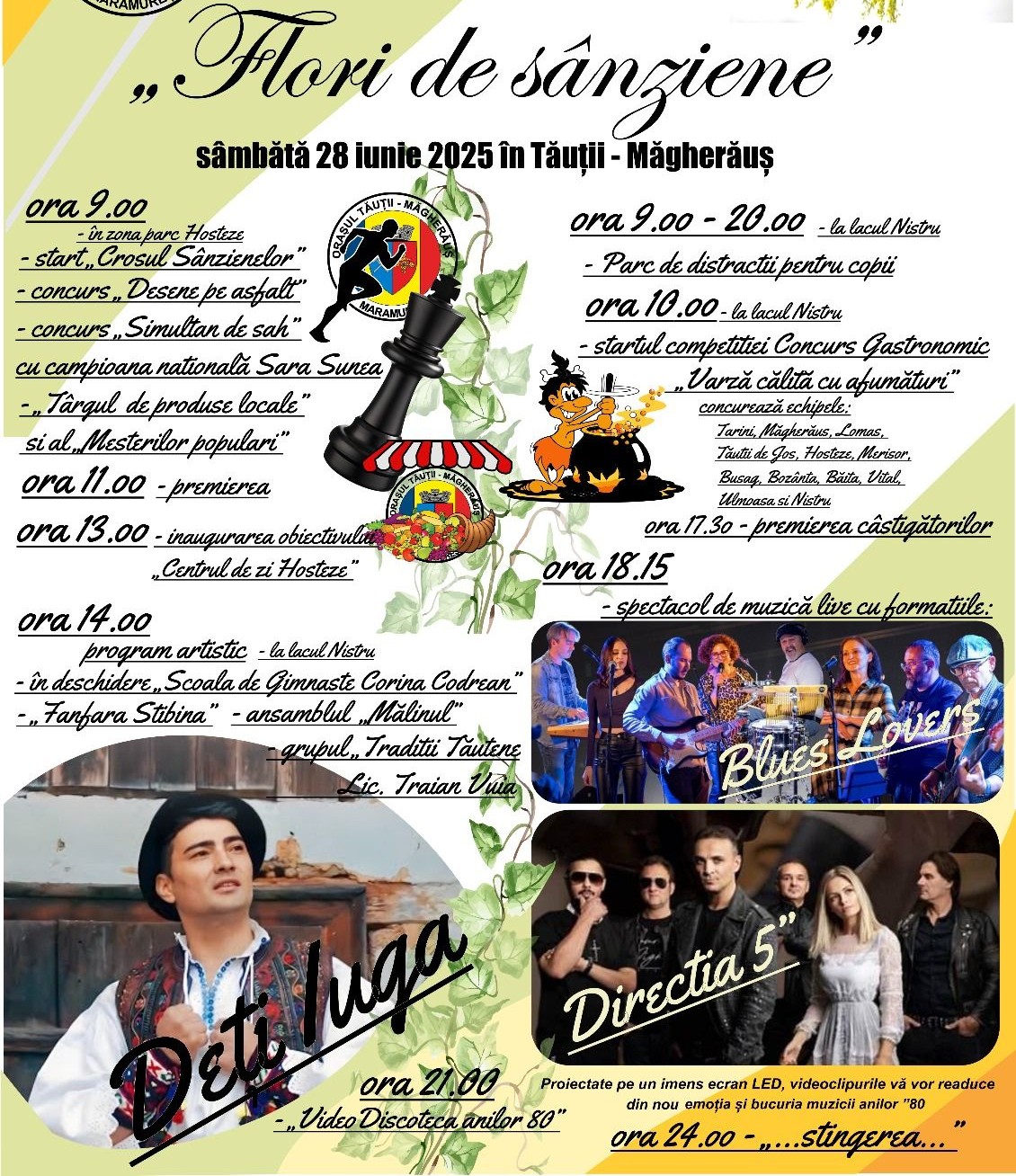 La Tăuții Măgherăuș va avea loc sâmbătă, 28 iunie, evenimentul ”Flori de Sânziene”. Unul cu o agendă bogată, după cum anunță organizatorul, Primăria Tăuții Măgherăuș. Sunt cuprinse în program activități sportive, jocuri pentru copii, un târg al producătorilor locali, un concurs gastronomic, concerte și multe altele.