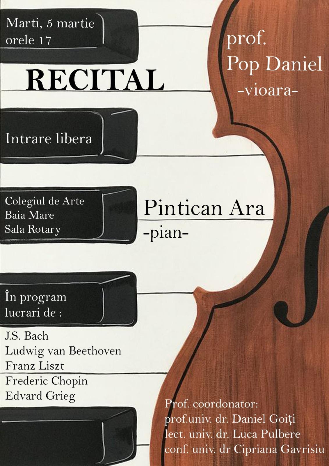 Studentă în anul IV la clasa prof. univ. dr. Daniel Goiți în cadrul Academiei Naționale de Muzică Gh. Dima din Cluj-Napoca, Ara Pintican (foto) a început studiul pianului la Colegiul de Arte Baia Mare, îndrumată de profesoarele Luminița Pop, Smaranda Grigorian și Rodica Marc, totodată participând la cursuri de măiestrie susținute de Anna Fedorova, Bogany Gergely, Gottlieb Wallisch, Aurelia Vișovan și Piotr Salajczyk, participând și fiind premiată la numeroase concursuri naționale.