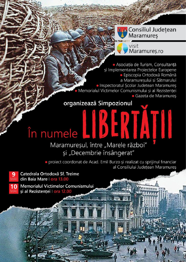 Azi, 9 mai, de la ora 13.00, Catedrala Episcoală „Sfânta Treime” din Baia Mare va găzdui simpozionul „În numele Libertății. Maramureșul între «Marele război» și «Decembrie însângerat»”, un proiect coordonat de Acad. Emil Burzo.