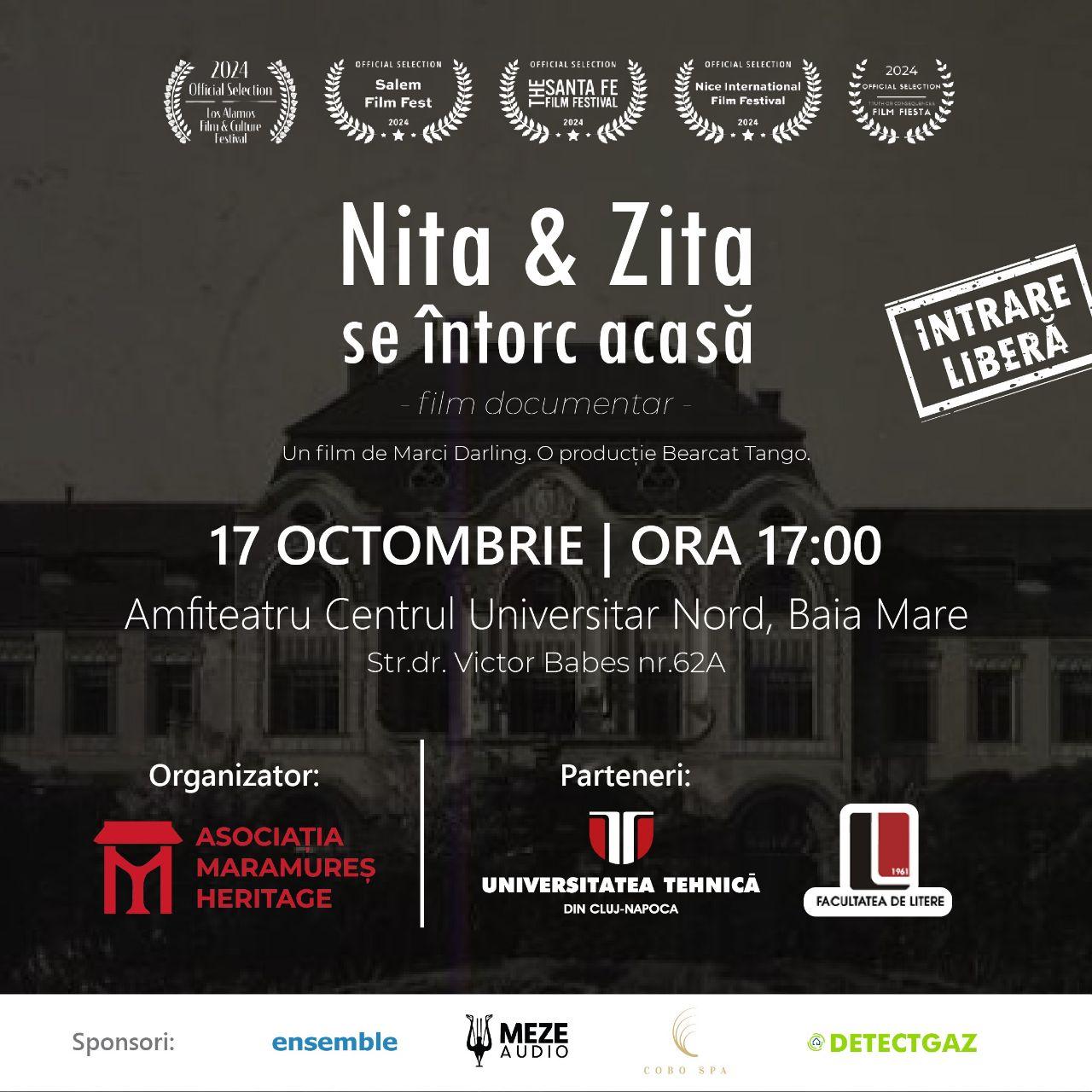 Pe 17 octombrie, de la ora 17:00, în Amfiteatrul Centrului Universitar Nord (str. dr. Victor Babeș nr. 62A, Baia Mare), va avea loc proiecția specială a filmului documentar „Nita & Zita”, realizat de regizoarea Marci Darling și produs de Bearcat Tango.