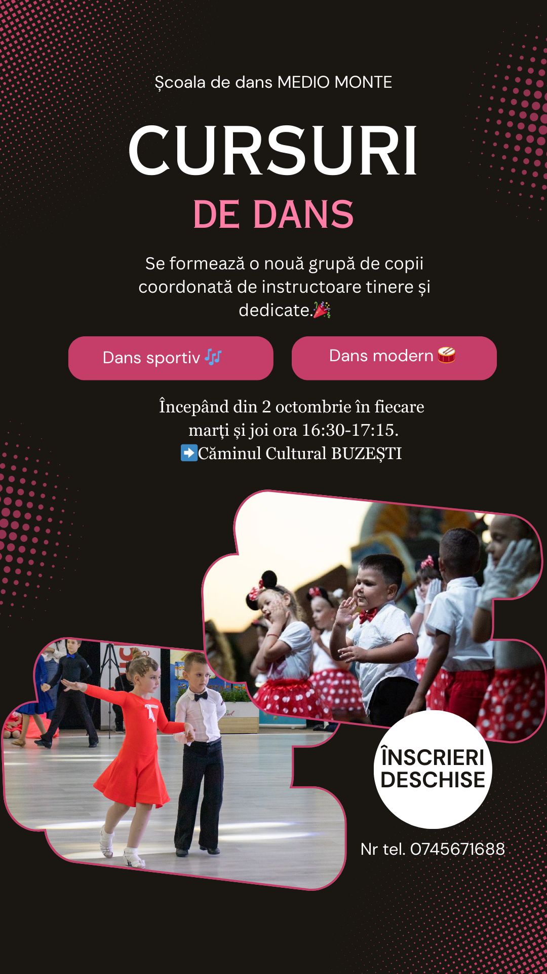 Cursurile vor începe în data de 2 octombrie și se vor desfășura la Căminul cultural din Buzești. La selecție se pot prezenta copii cu vârste între 4 și 10 ani, care doresc să descopere frumusețea dansului și să își dezvolte talentul artistic.