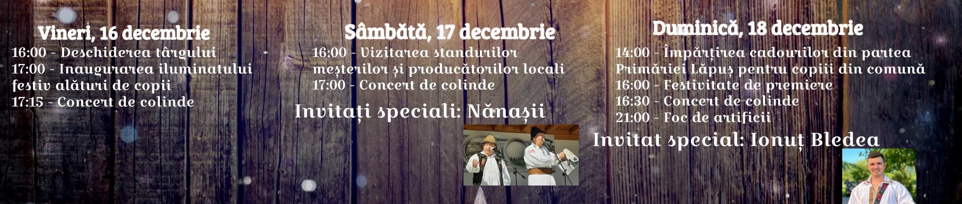 În perioada 16 – 18 decembrie, între orele 16:00 și 21:00, în parcul din centrul comunei Lăpuș se va desfășura cea de-a doua ediția a Târgului de Crăciun „Feerie de iarnă”.