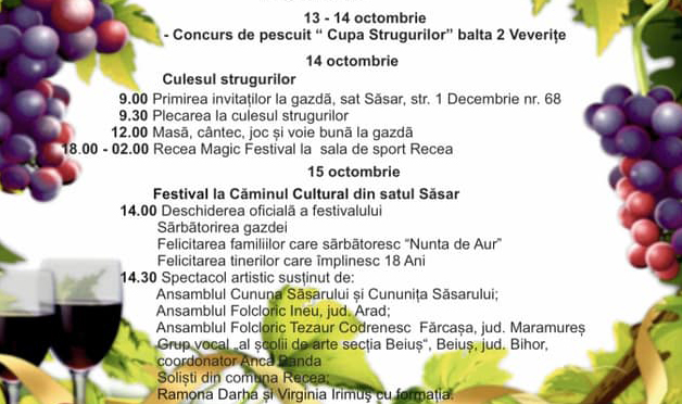 În acest weekend, în Săsar (comuna Recea) va avea loc cea de-a X-a ediție a „Festivalului strugurilor”.