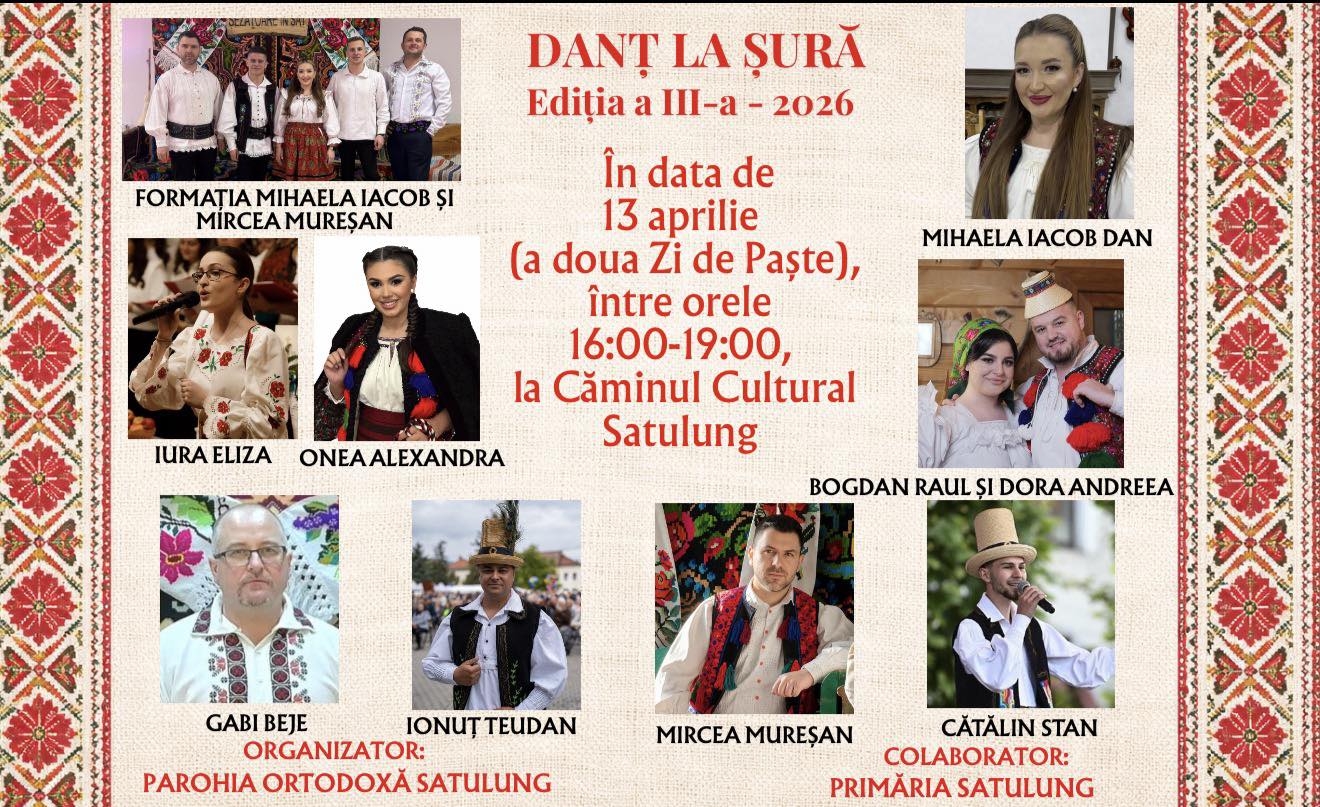 Comunitatea din Satulung este invitată azi, 13 aprilie, a doua zi de Paști, la cea de-a III-a ediție a evenimentului „Danț la șură”, organizat la Căminul Cultural, începând cu ora 16:00.