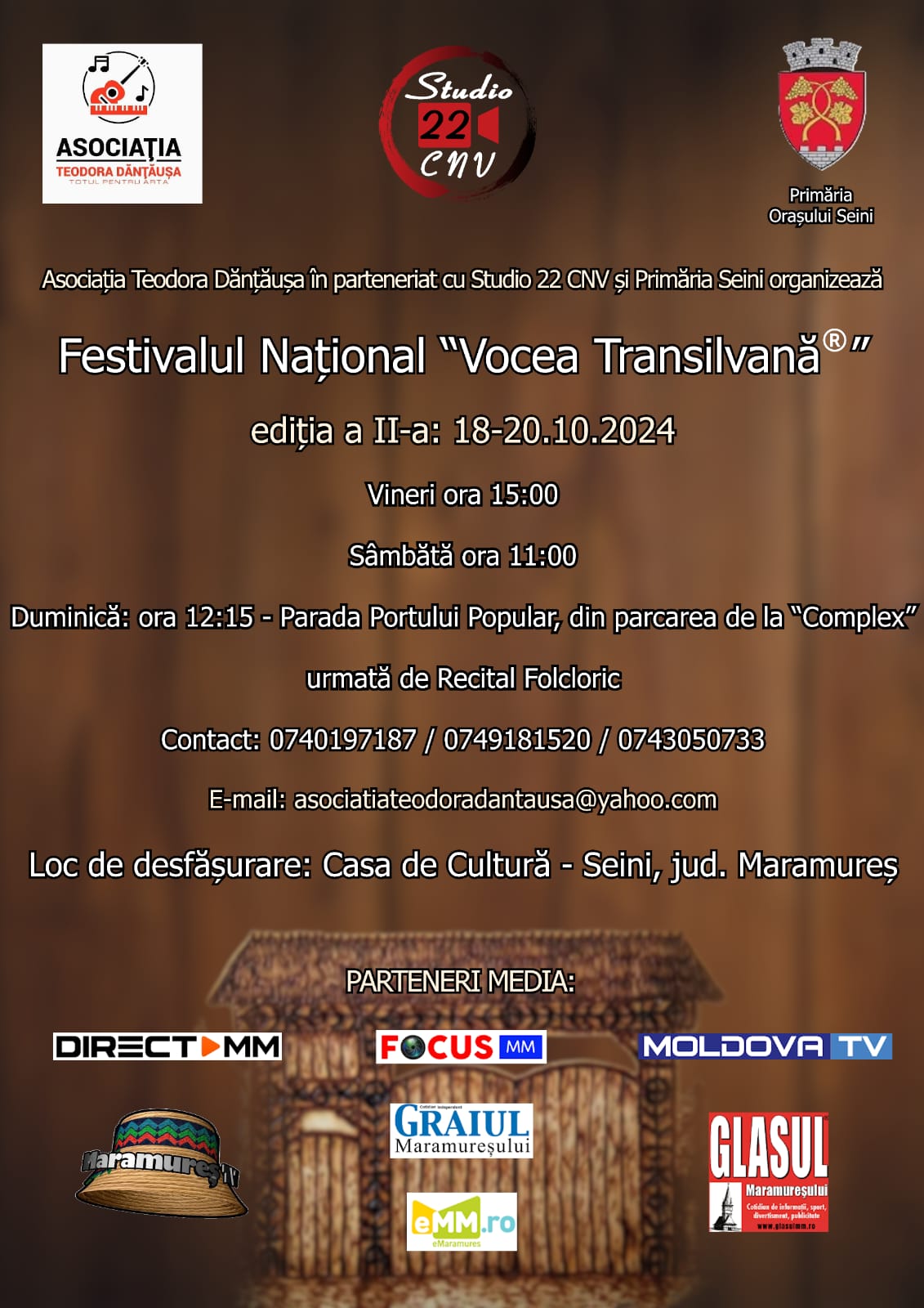 În perioada 18 – 20 octombrie, în Seini, la Casa de Cultură, se va desfășura cea de-a II-a ediție a Festivalului Național „Vocea Transilvană”.