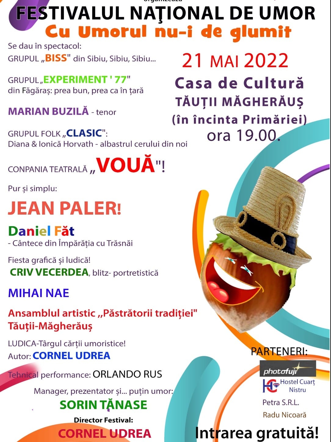 Sâmbătă, 21 mai, de la ora 19.00, Casa Orășenescă de Cultură a Orașului Tăuții-Măgherăuș va găzdui prima ediție a Festivalului Național „Cu Umorul nu-i de glumit”.