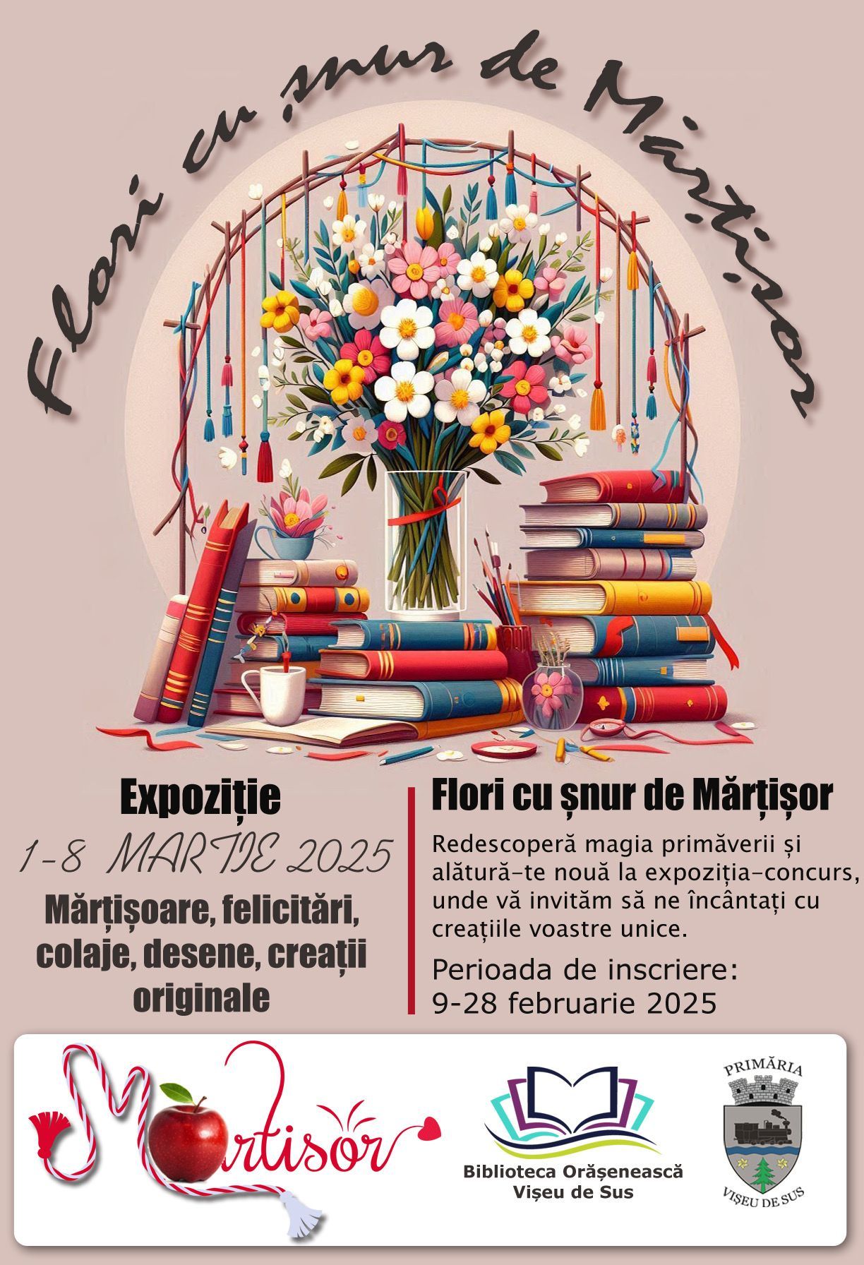În așteptarea primăverii, a primelor raze de soare și a primului ghiocel, în Vișeu de Sus se dă startul celei de-a patra ediții a expoziției-concurs ,,Flori cu șnur de mărțișor”.