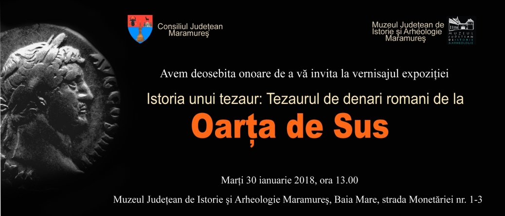 La Muzeul Judeţean de Istorie şi Arheologie Maramureş, va avea loc, marţi 30 ianuarie, orele 13.00, vernisajul expoziției Istoria unui tezaur: tezaurul de denari romani de la Oarţa de Sus . Expoziţia îşi propune să prezinte publicului larg tezaurul de denari romani de argint descoperit la Oarţa de Sus, acesta având o deosebită valoare istorică pentru zona de nord-vest a României. Tezaurul este unic din perspectiva descoperirilor similare pe teritoriul actualului judeţ Maramureş. Alături de tezaurele de la Ghirişa I, Ghirişa II și Teceu, cel de la Oarţa de Sus se numără printre cele mai importante tezaure descoperite în afara graniţelor nordice şi nord-vestice ale provinciei romane Dacia.