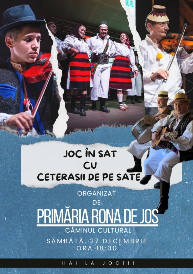 Căminul Cultural din Rona de Jos va găzdui, în a treia zi de Crăciun, evenimentul special „Joc în Sat cu Ceterașii de pe Sate”, organizat de Primăria Rona de Jos, de la ora 18:00.