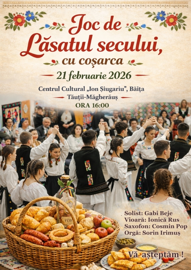 În pragul Postului Paștelui, la Centrul Cultural „Ion Șiugariu” din Băița se organizează, pentru al treilea an consecutiv, tradiționalul „Joc de Lăsatul secului, cu coșarca”. Evenimentul va reuni întreaga comunitate din Tăuții Măgherăuș într-o atmosferă autentică, în data de 21 februarie de la ora 16:00.
