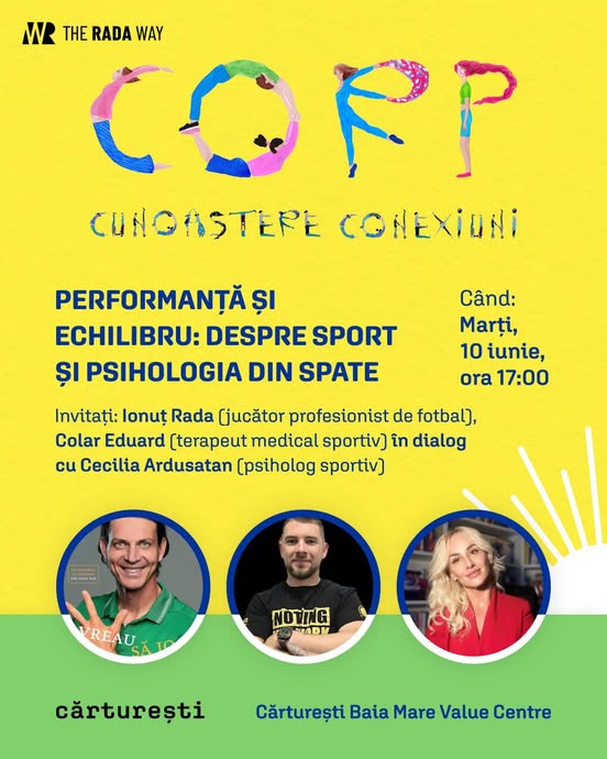 Cei care își doresc să descopere ce înseamnă cu adevărat performanța în sport, vor avea ocazia să o facă în cadrul workshopului „Corp – Cunoaștere – Conexiuni”, care va avea loc marți, 10 iunie de la ora 17:00, la Cărturești Value Center Baia Mare.