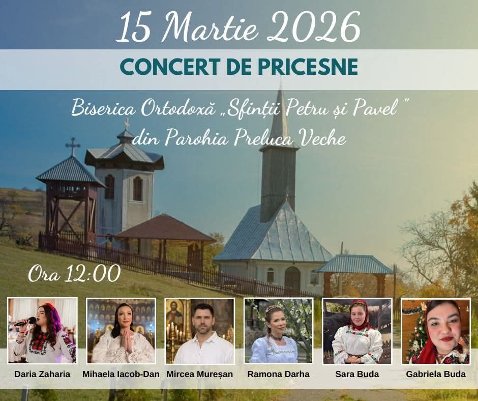 Parohia Preluca Veche va găzdui duminică, 15 martie, de la ora 12:00, un concert de pricesne care promite să încânte comunitatea locală. Evenimentul va avea loc la Biserica Ortodoxă „Sfinții Petru și Pavel”, fiind dedicat valorilor spirituale și muzicii religioase tradiționale.