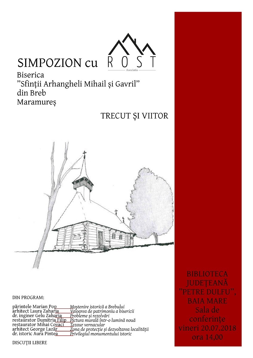 În aceeași zi și în același loc, dar începând cu orele 14.00, va avea loc conferința ”Biserica Sfinții Arhangheli Mihail și Gavril din Breb, Maramureș – Trecut și viitor”. Evenimentul va fi organizat de Asociația ROST. Vor vorbi preot Marian Pop, arhitecții Laura Zaharia și George Lazăr, dr. ing. Gelu Zaharia, restauratorii Dumitria Filip și Mihai Covaci și dr. istoric Aura Pintea.