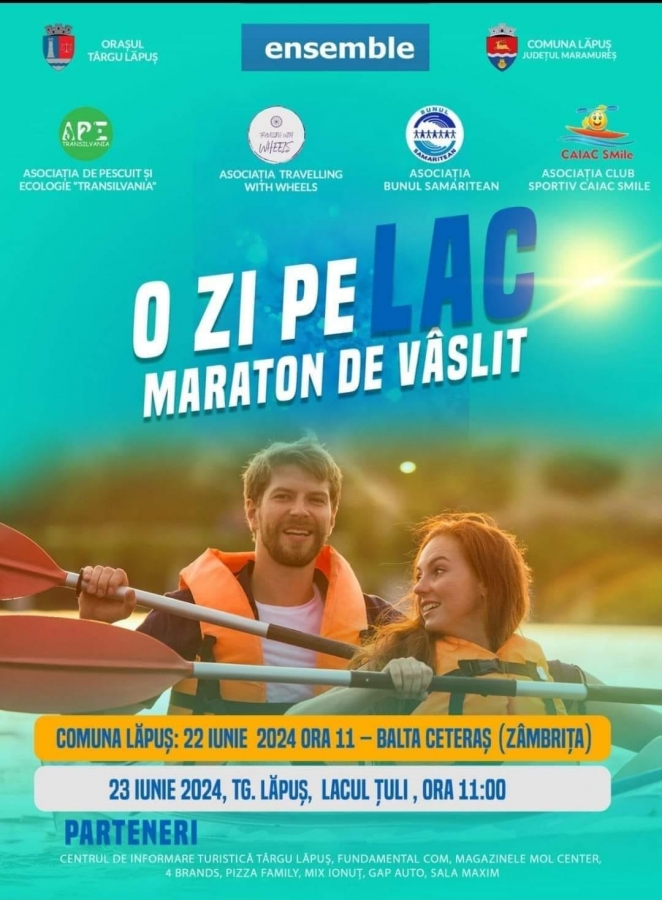 „Patru asociații și două primării partenere pentru același scop – acela de a petrece câteva ore pe lac, în cadrul unui concurs de vâslit! Toți cei care doriți să vă petreceți ziua de sâmbătă – 22 Iunie – într-un mod mai special, sunteți așteptați începând cu ora 11.00 la Lacul Ceteraș de la Zâmbrița pentru a intra în jocul unui maraton de vâslit sau pentru a fi spectator! Vă așteptăm cu drag!”, transmite Cristina Buda, primarul din Lăpuș.