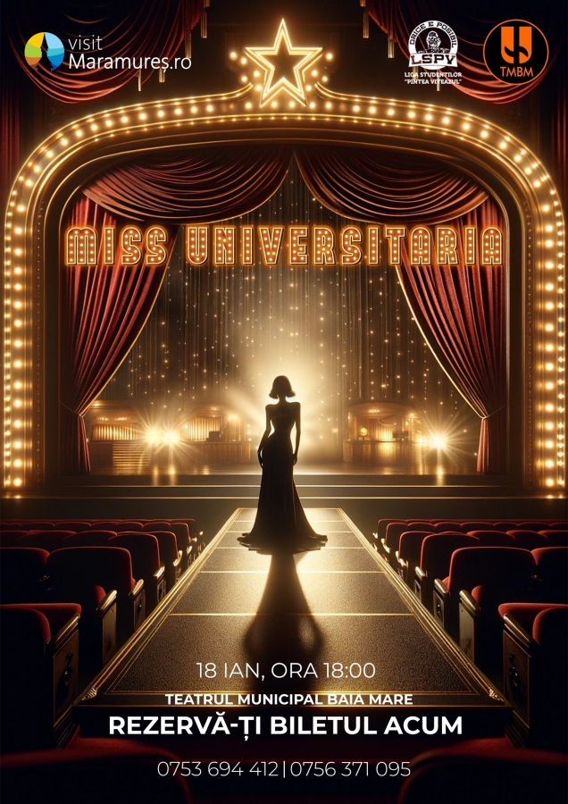 Evenimentul ”Miss Universitaria” programat joi, 18 ianuarie, de la ora 18.00, deschide seria de spectacole programate la Teatrul Municipal Baia Mare în această săptămână. Organizat de Liga Studenților “Pintea Viteazul” și Teatrul Municipal Baia Mare, evenimentul promite să aducă o seară plină de strălucire și eleganță, în care tinerele vor concura pentru titlul de “Miss Universitaria”. Cu o combinație de frumusețe, inteligență și grație, participantele vor încânta publicul și juriul cu prezența lor fermecătoare pe scenă, iar soliștii, instrumentiștii și corpul de balet al Teatrului Municipal vor oferi momente surpriză, pentru a transforma seara în una de neuitat!
