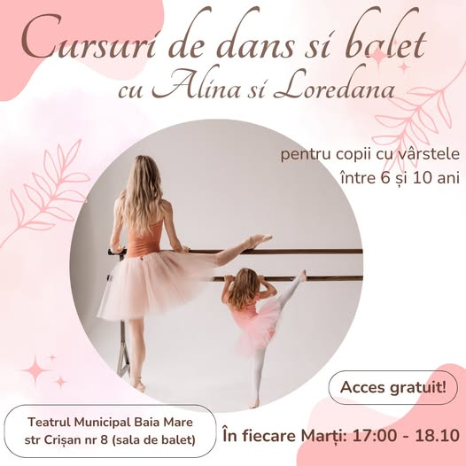 Începând cu 4 februarie, copiii cu vârste între 6 și 10 ani vor putea participa la cursuri susținute de balerinele Alina Coteț și Loredana Maghear. Cursurile vor avea loc în fiecare marți, între 17:00 – 18:10, la sala de balet a Teatrului Municipal Baia Mare.